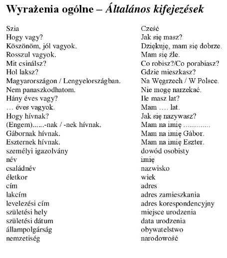 swka, wyraenia - szavak, kifejezsek